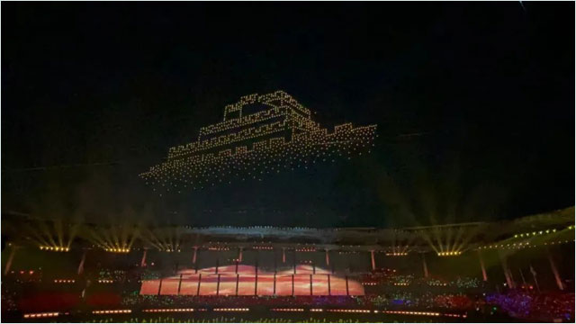 本次陕西省运会,大漠大1000架无人机精彩亮相,成为夜空中最吸睛的“C位担当”。表演内容融入榆林地方特色和陕西十七运各类元素,以科技的力量、光影的魅力、震撼的编队阵型为陕西省运会喝彩助威。