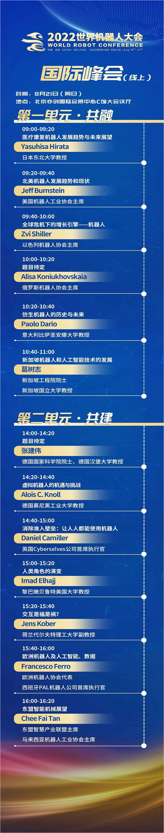 近日,世界机器人大会官方平台公布了本届大会主论坛详细议程。
