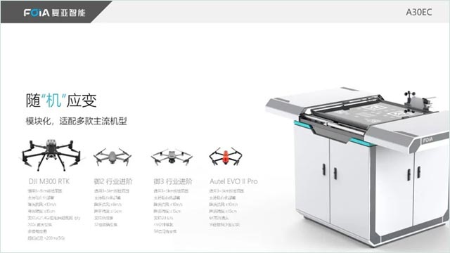 一般来说,根据无人机类型对应可适配的无人机机场类型即可。目前复亚智能A30EC无人机自动机场已打通大多数主流机场的类型,用户可根据场景需求灵活选用无人机。