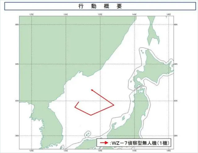 3月26日,日本本防卫省统合幕僚监部发布消息称,当天上午发现一架中国军队WZ-7无人侦察机在日本海飞行。据通报,这架WZ-7无人机从中国大陆方向飞来,在日本海上空盘旋转向后,朝着西北方向飞走,航空自卫队战机已紧急升空进行应对。