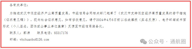 武汉市支持低空经济高质量发展的若干措施(征求意见稿)