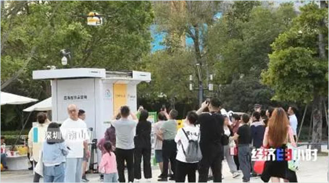 在深圳一家公园,一架无人机外卖柜成为新晋网红打卡地。消费者扫码、点单,半小时之内无人机就将美食“空投”进外卖柜。通过精准定位系统,顾客自助拿取。